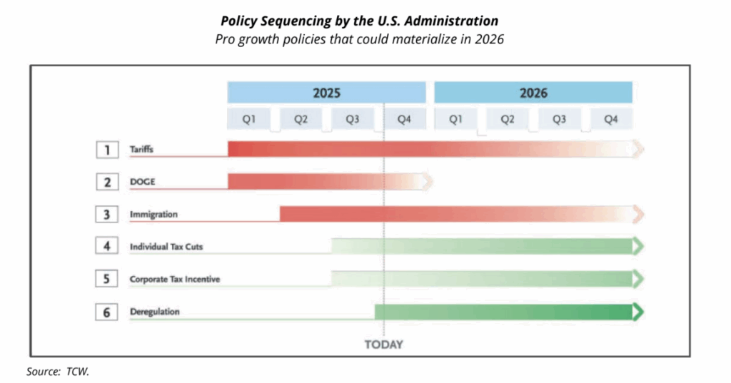 Looking ahead, while the U.S. administration has focused mostly on policy goals in 2025 that could potentially have a negative impact on growth, including tariffs, other policy goals with anticipated positive impacts could materialize in 2026. The passing of the One Big Beautiful Bill Act (OBBA) in July includes the extension of lower individual tax rates and introduces new tax deductions for individuals and corporations, including corporate tax incentives for research and development. The administration has also signaled deregulation goals that are expected to increase bank balance sheet capacity, infrastructure spending, and create a favorable environment for mergers and acquisitions that could be favorable for economic growth.